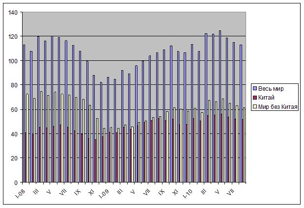 Правда, в последнее время ряд известных государственных деятелей выступили с опровержениями тревожных слухов. Так Президент США Барак Обама, опираясь на выводы Национального бюро экономических исследований, заявил, что рецессия в американской экономике официально закончилась в июле 2010 года, хотя это, впрочем, не означает, что экономика страны уже работает в нормальном режиме. Министр финансов США Тимоти Гейтнер сообщил, что считает крайне маловероятным повторный экономический спад в ближайшие месяцы. Вероятно, оба они правы. Однако летом участники рынка ожидали не столько прекращения рецессии (о прохождении крайней точки кризиса специалисты говорили еще в середине прошлого года), сколько возобновления роста. А вот этого пока в западных странах не наблюдается. Прежде всего, не восстановился потребительский рынок, а значит, спрос на автомобили, бытовую технику и другие товары остается слабым. Соответственно, не происходит заметных изменений к лучшему и в секторе промышленного оборудования.